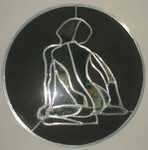 2005Dit 'zittend naakt' is omgeven door een donkerbruine spiegel. De figuur is in helder spiegelglas uitgevoerd.